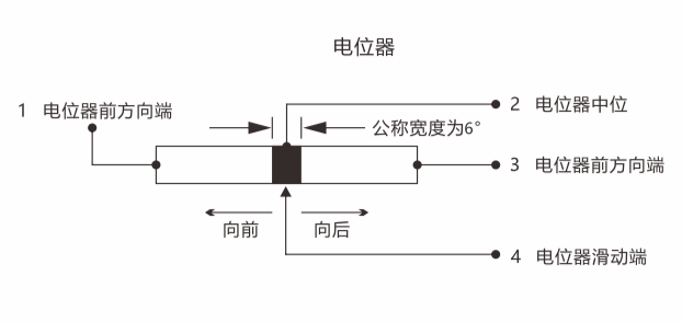 为了保证信号采集端能够准确采集到手柄中位信号,电位器上专门在电阻器的中位位置设计了一个抽头并且同时在中位设置了死区(就是滑动端在中位死区位置滑动时电阻值是不变的)。